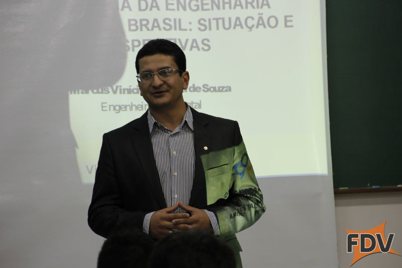 Turma de Engenharias assistem palestras sobre O “Panorama da Engenharia Ambiental no Brasil: Situação e Perspectivas” e “O papel do Sindicato nas relações de trabalho e Senge Jovem” ministradas por Marcus Vinícius Batista de Souza, Presidente da Associação Nacional dos Engenheiros Ambientais (ANEAM), Engenheiro Fernando José, Diretor Regional Administrativo da Senge-MG e Tércio Casalechi, Assessor do Presidente do Senge-MG.