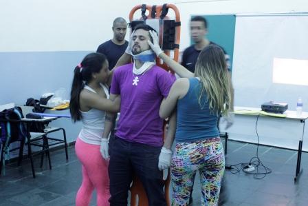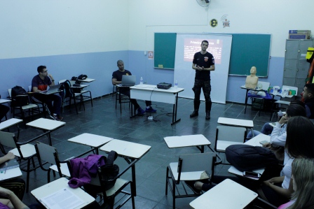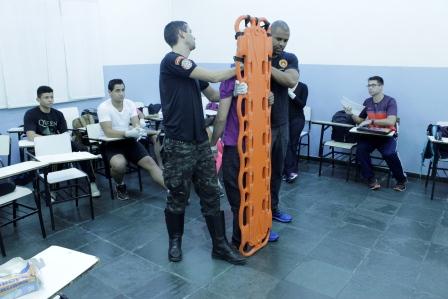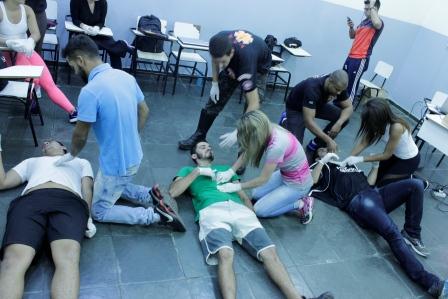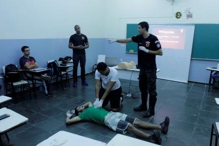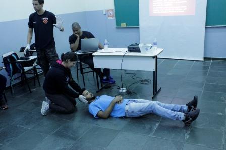 A aula teve uma parte teórica sobre as atualizações das medidas a serem tomadas em situações de emergências, como também, intervenções práticas vivenciadas pelos alunos perante a uma parada cardiorrespiratória, desmaio, engasgo, lesões corporais e outras. Os equipamentos levados pelos bombeiros deixaram os alunos bem entusiasmados a aprenderem as manobras corretas, visando principalmente evitar o agravamento das lesões da vitima.