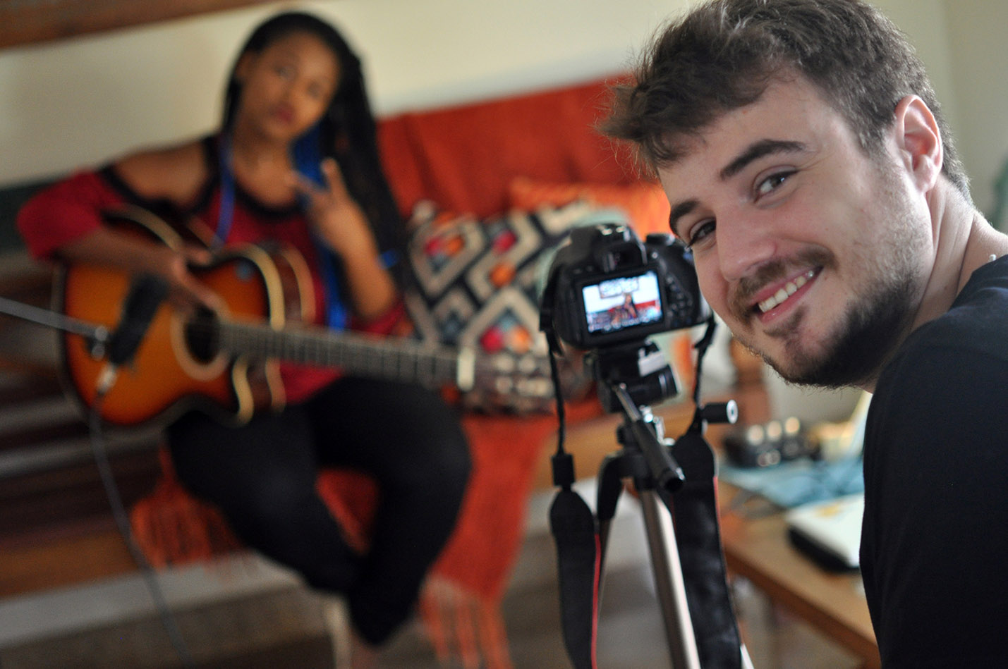Estudantes produzem conteúdo para o canal da cantora Carla Sceno.