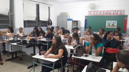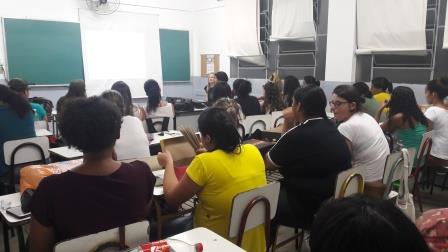Professora ministra curso para alunas de Pedagogia