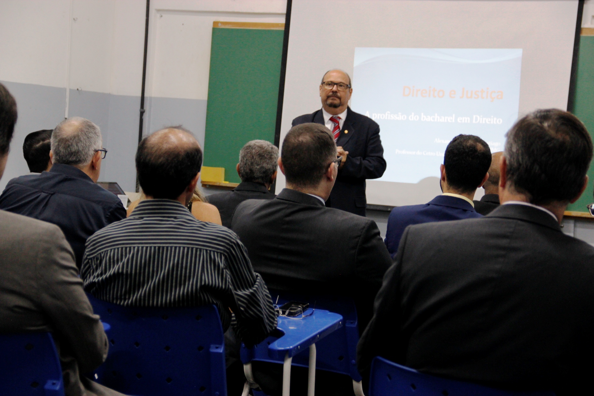 Na condução da sua fala, destacou o papel do bacharel em Direito e dos diversos campos de atuação no órgão do Poder Judiciário, como magistrado. Também destacou a importância das demais carreiras jurídicas , como o Promotor de Justiça, procurador, defensor publico, delegado, além das demais funções como servidor público no âmbito federal, estadual ou municipal. Ressaltou a importância também da atuação na advocacia privada, como profissional liberal ou advogado empregado. Assim como o papel do professor como um propulsor do conhecimento jurídico e responsável pela qualidade nos cursos de Direito.