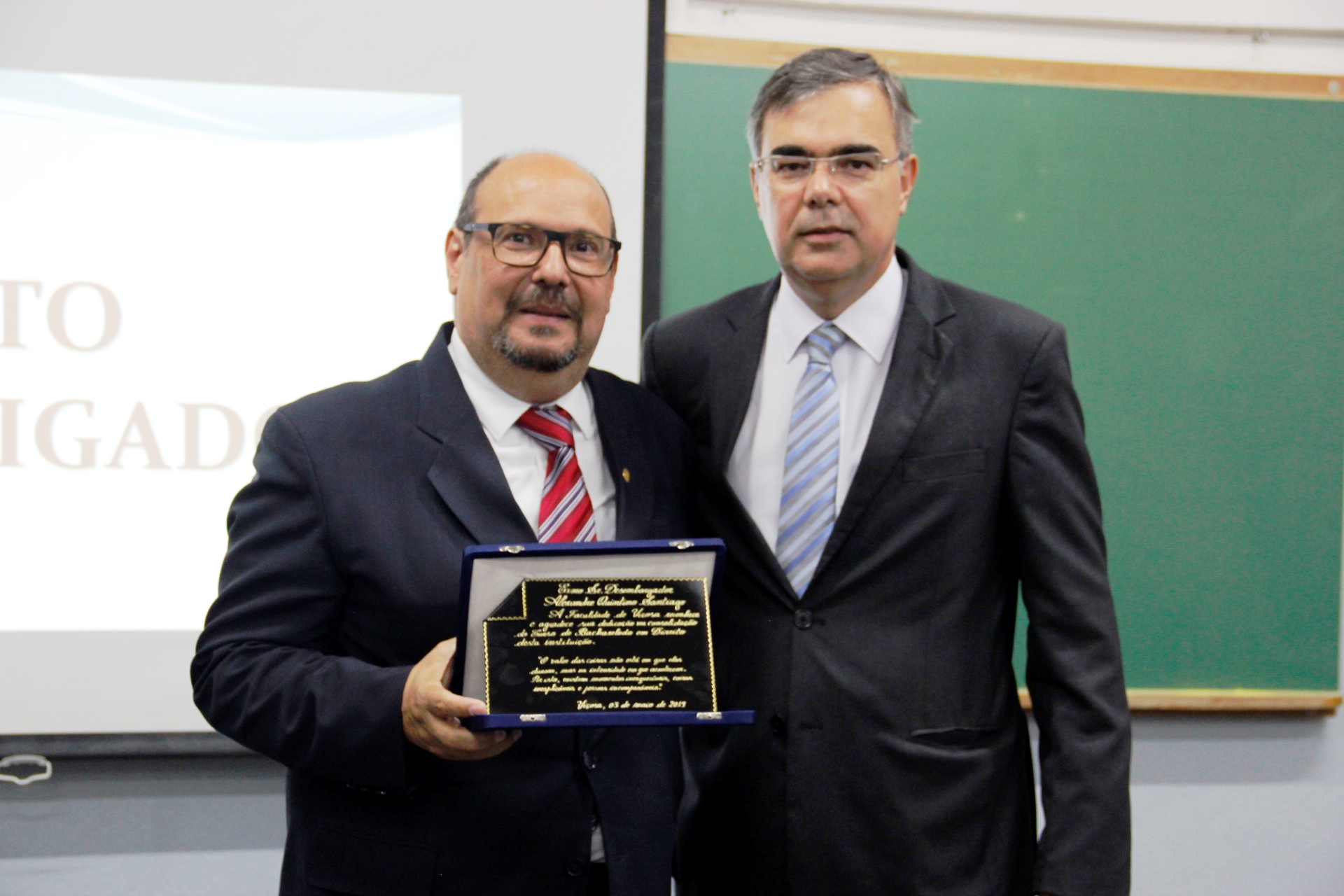 Para finalizar o evento, o aluno Weslei Marques Brandão Silva entregou o certificado ao palestrante e foi entregue uma placa de agradecimento pela palestra, feita pelo juiz de Direito e amigo de infância Exmo Dr. André Luís Melo Cunha.