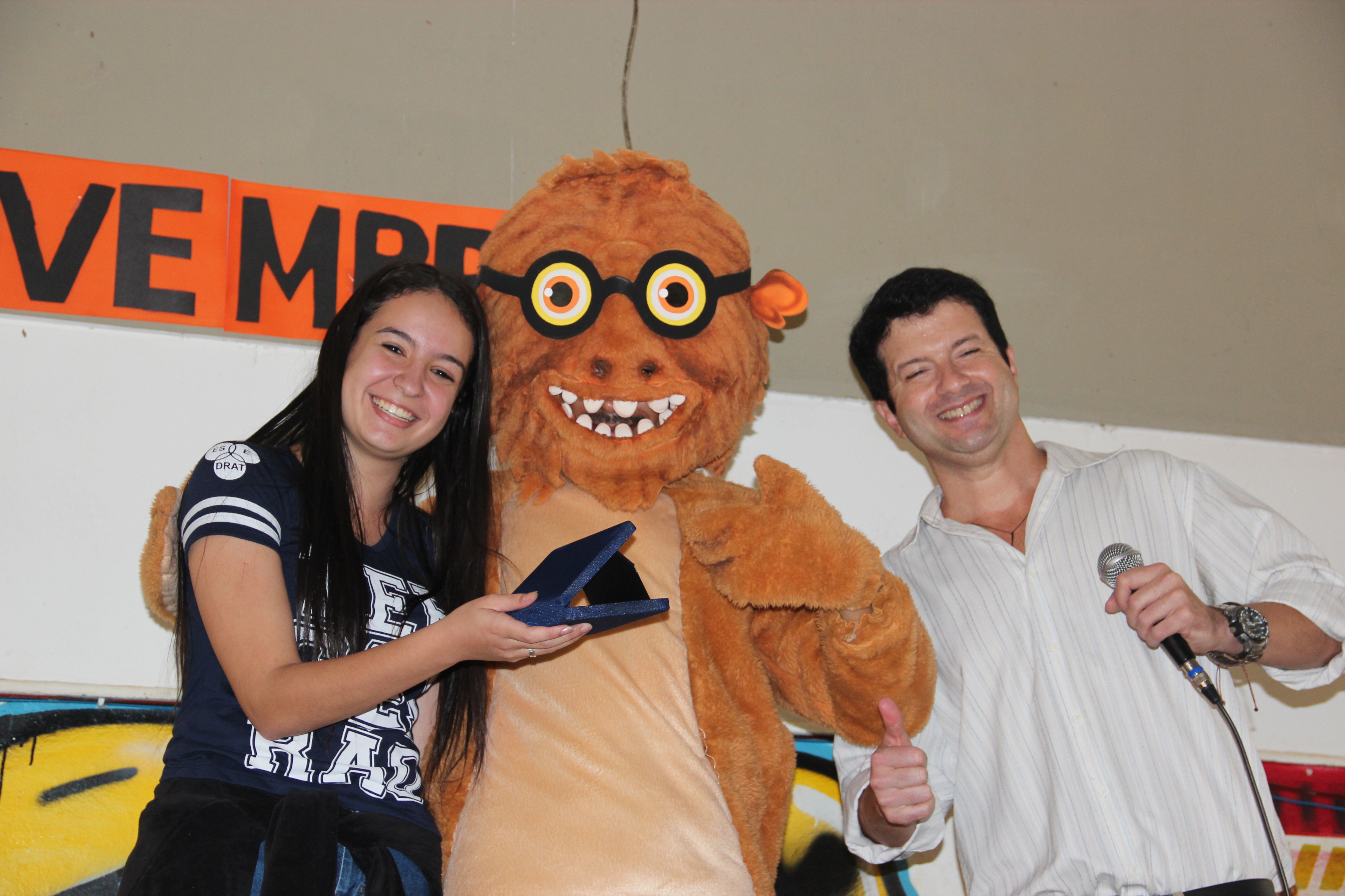 Cerca de 200 pessoas, entre estudantes, funcionários e professores, estiveram presentes na grande premiação do projeto “Publicitário por um dia”, que aconteceu na manhã desta quinta-feira (29 de novembro). A iniciativa, planejada e executada por alunos do curso de Publicidade e Propaganda da Faculdade de Viçosa (FDV), ofereceu prêmios pela criatividade textual de formandos da Escola Estadual Dr. Raimundo Alves Torres (ESEDRAT). O objetivo era escolher um nome para o mascote da FDV, com uma argumentação para justificar a escolha.