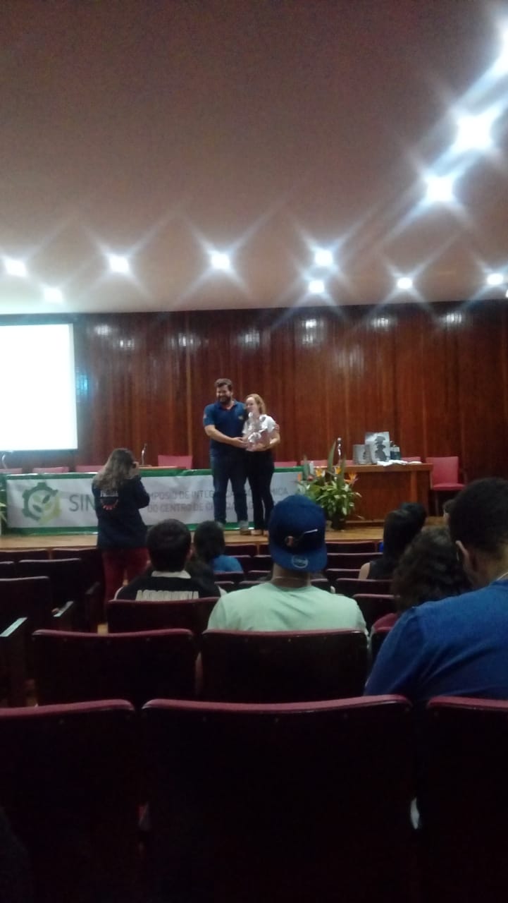 Momento em que Matheus recebe o prêmio de melhor trabalho publicado no SINCCA.