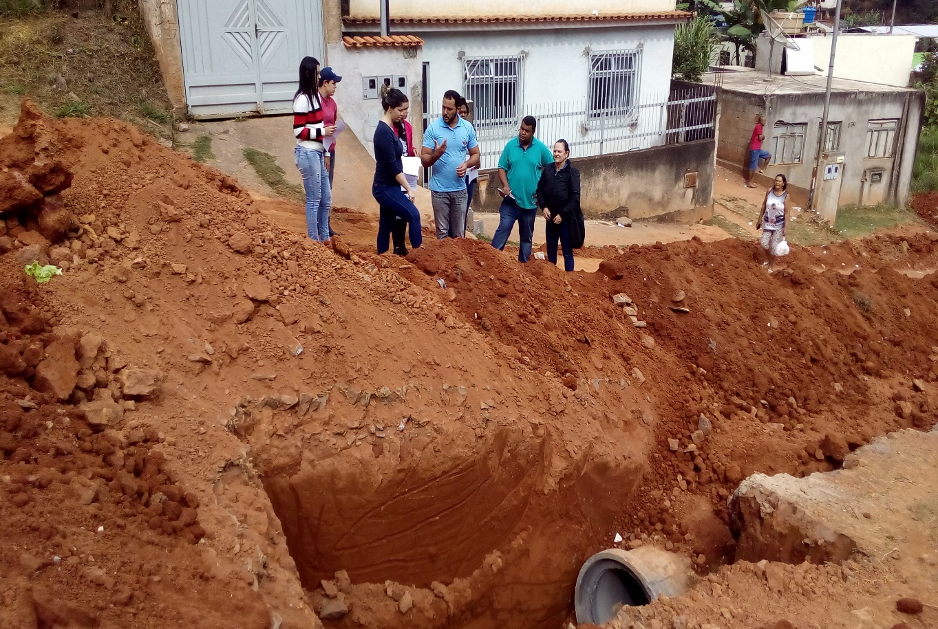 O sistema de drenagem urbana mostra-se uma importante obra de saneamento básico, pois, além do manejo das águas pluviais, tem a finalidade de prevenir alagamentos e inundações, propiciando um ambiente salubre à população. Nesta perspectiva, no último sábado, dia 16 de junho, foi realizada uma visita técnica com os alunos do Curso de Engenharia Ambiental da Faculdade de Viçosa. A visita teve por objetivo propiciar aos alunos a verificação dos conhecimentos adquiridos em sala de aula na disciplina DEA 367-HIDRÁULICA E DRENAGEM URBANA a respeito dos elementos operacionais de microdrenagem e percepção dos problemas atuais de drenagem urbana mediante visita in loco ao projeto “SISTEMA DE DRENAGEM DE ÁGUAS PLUVIAIS” do bairro Nova Viçosa, localizado no município de Viçosa-MG. A Visita foi coordenada pelos professores Dalila Campos de Medeiros Fernandes e Luan Brioschi Giovanelli, acompanhados de um técnico da Secretaria de Obras da PMV – Prefeitura Municipal de Viçosa.